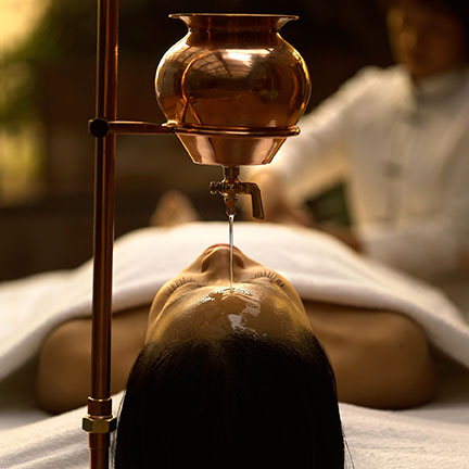 - Shirodhara – Soothing therapy where warm medicated liquid is gently poured on the forehead.